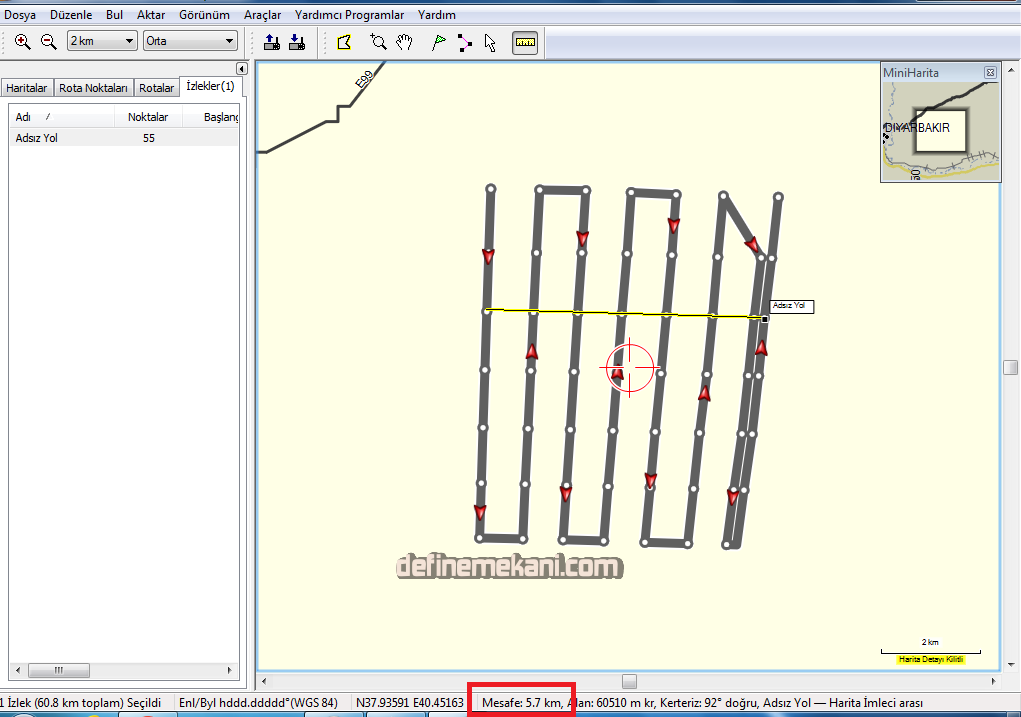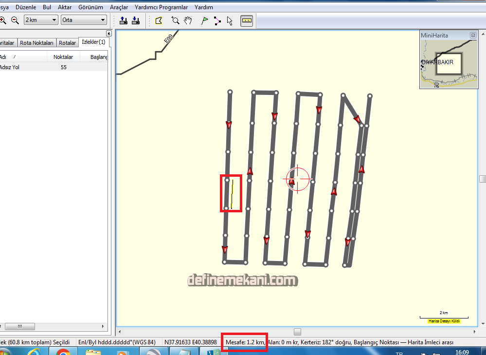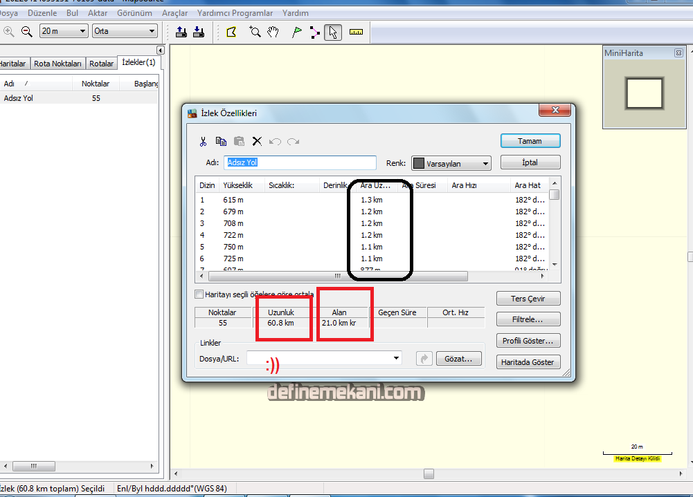 55 noktayla =yaklaşık 42 kilometre kareyi taramışsın