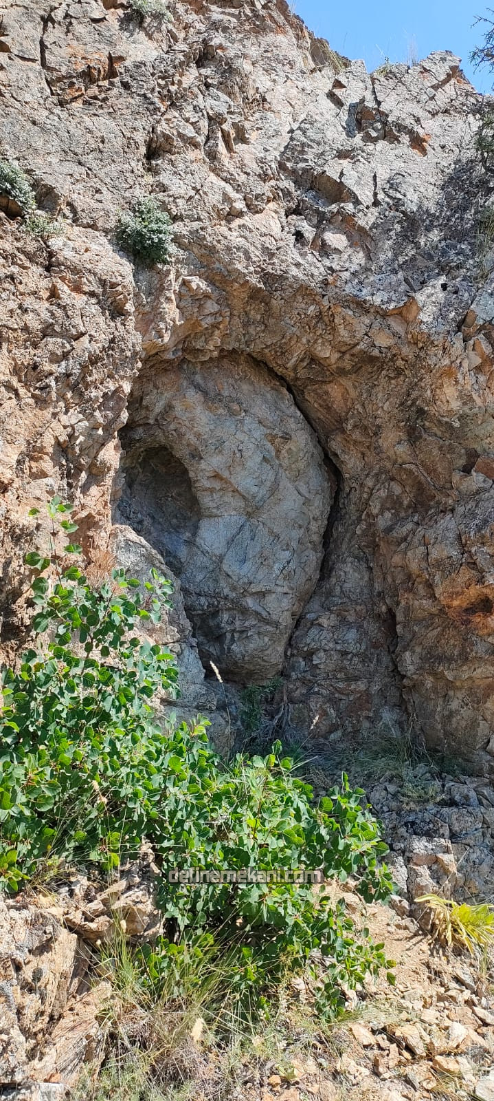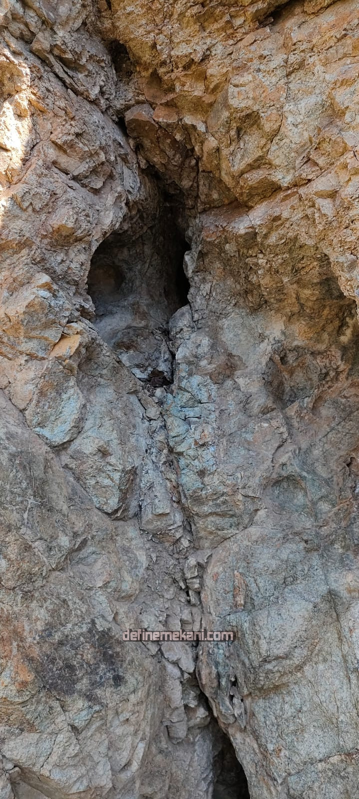 Ustam dedektör sol üst taraftan boşluk verdi.minarelde verdi.bende kiramadigim için bıraktım.Kayanın birleşen yerlerinde boşluk varmışimdi bu tür kayalar genelde doğal olur zamanla kayanın dış katmanı kırılıp döküldükce iç kısımdaki daha sert tabaka çıkar ve bazen böyle giriş gibi görünür iknci seçenek böyle yerler olur ama içerden kapatıldığı için oraya giremesin çünkü giriş farkı yerde olur