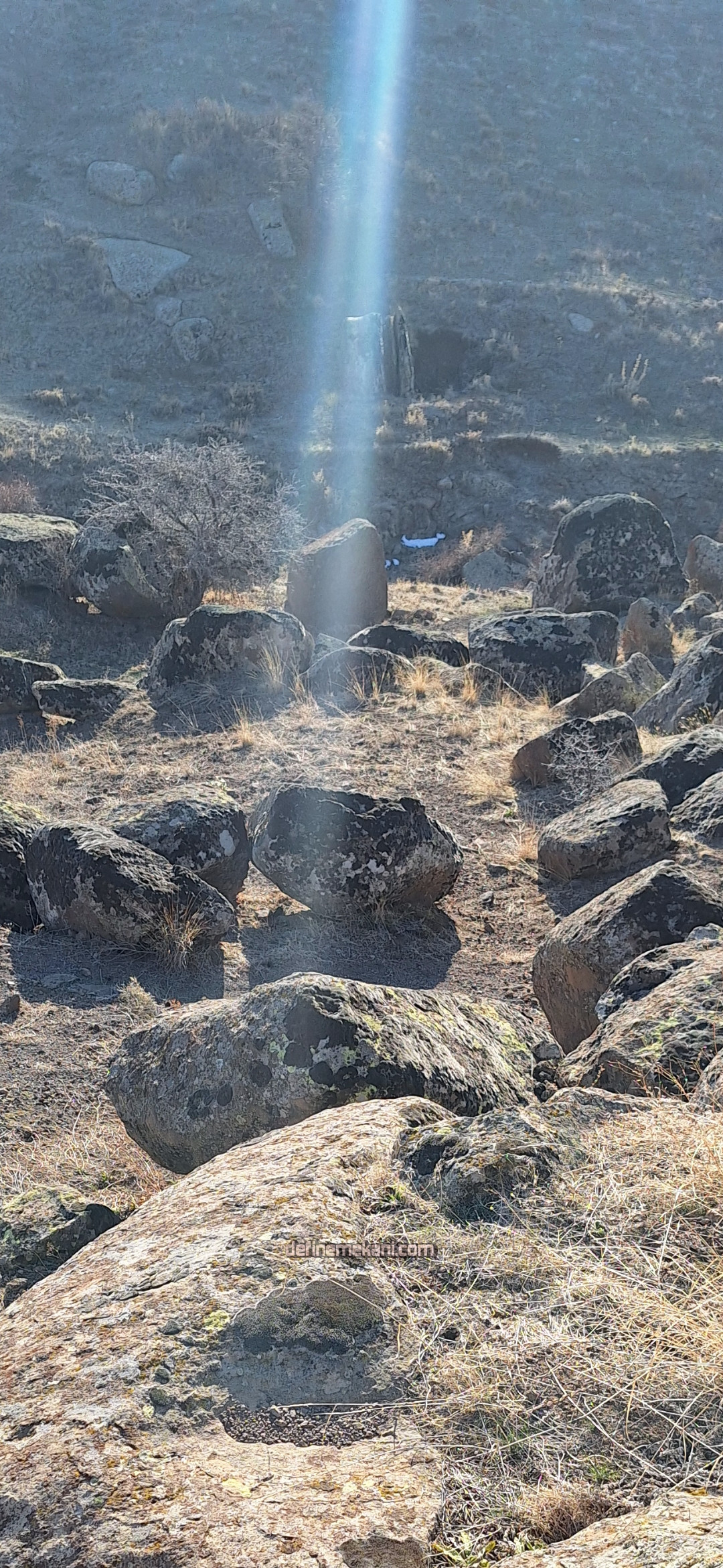 Yakın fotoğrafını çekmiştim ama bulamadım aklıma gelmişken fotoğrafını ekleyim dedim bu çatal taşların bulunduğu yerde kazı yapılıp bulunulmuş.