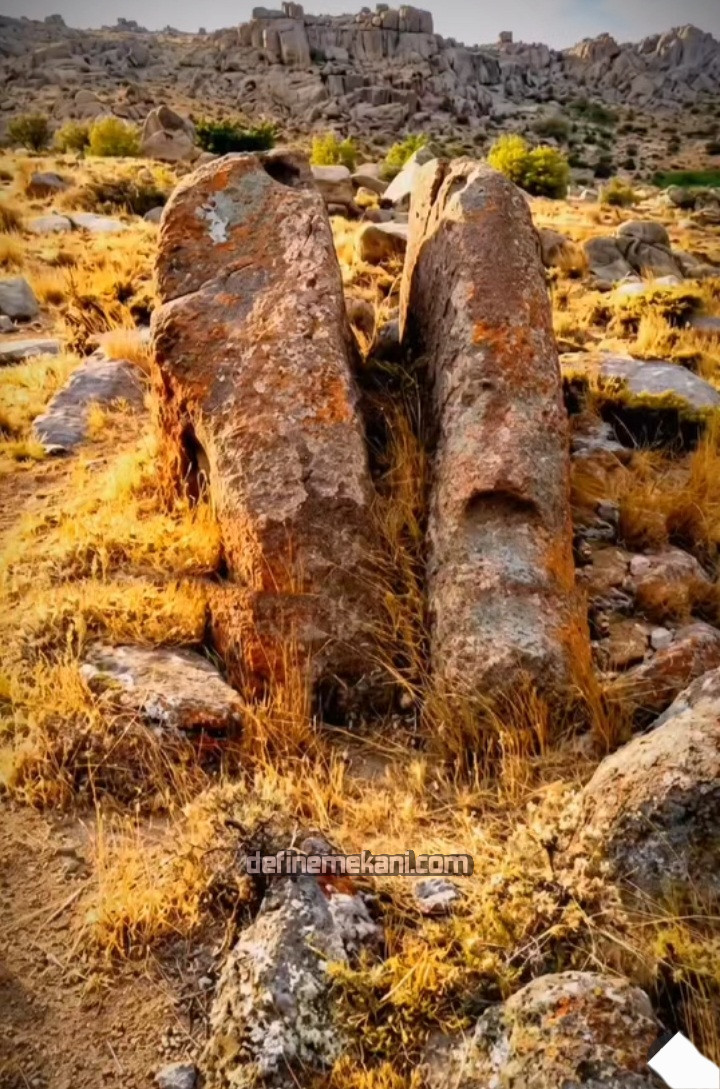 Ustam konuyu görünce bir bakıyım dedim, bahsettiğiniz çatal ttaşlarından bir mevkide denk geldim, tabi ozaman kazılmamış yaklaşık 5,6 yıl oluyor dere yatağının yanında çok eski bir yerleşim yeri tüneli odaların felan bulunduğu bir alandı, bu çatal taşlar dikkatimi çekti ama böyle birşey olduğunu düşünmedim, 3 sene felan oluyor oraya tekrar gittiğimde bu çatal taşları sağ tarafı böyle 1.5 metre uzunluk genişlik kazılmış ve küçük taşlarla kutu gibi |___| (20×15)bir yer taşları üst üste koyarak örülmüş küçük sandık gibi onun içerisinde de artık kapaklı sandık mı veya başka birşey mi vardı bilemiyorum görünce çok şaşırdım,