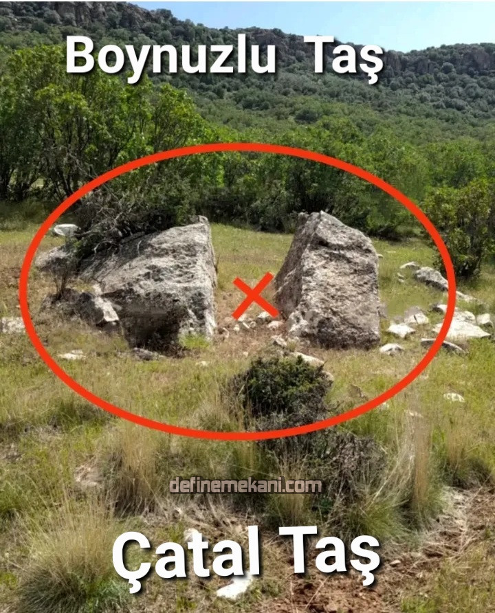 Çatal taşın her iki taşın aradında boşluk yoksa gömü ya önünde yada arkasında'dır ve ayni zamanda heriki taşın arasında dürbin gibi bakılır 2 ikinci yeri vermektedir kısaca.