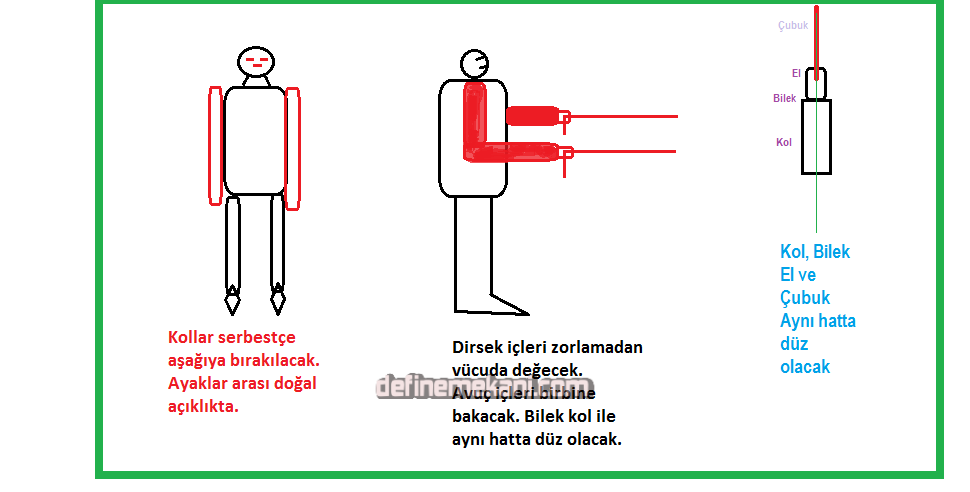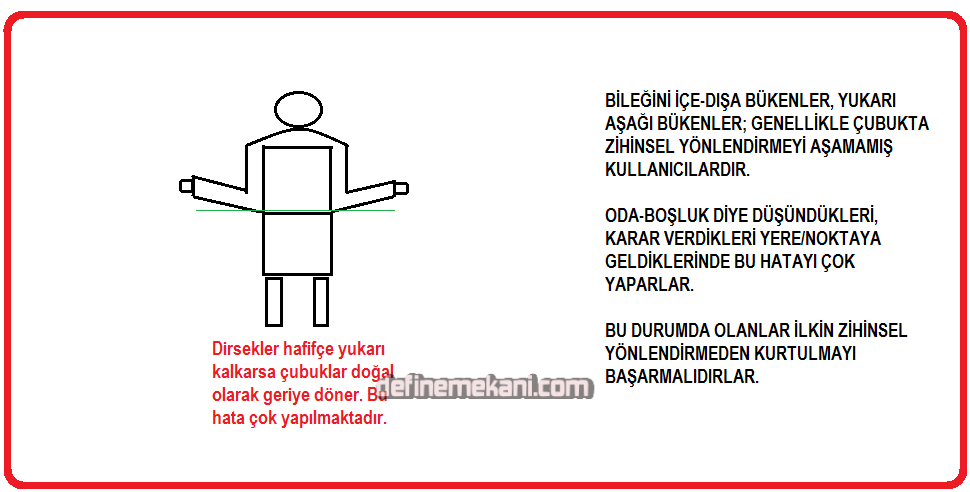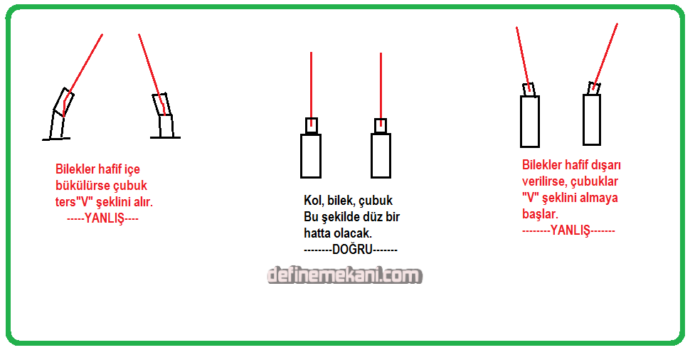 Usta olmayanların, çubuklarını yere palalel olarak tutmasıdır.