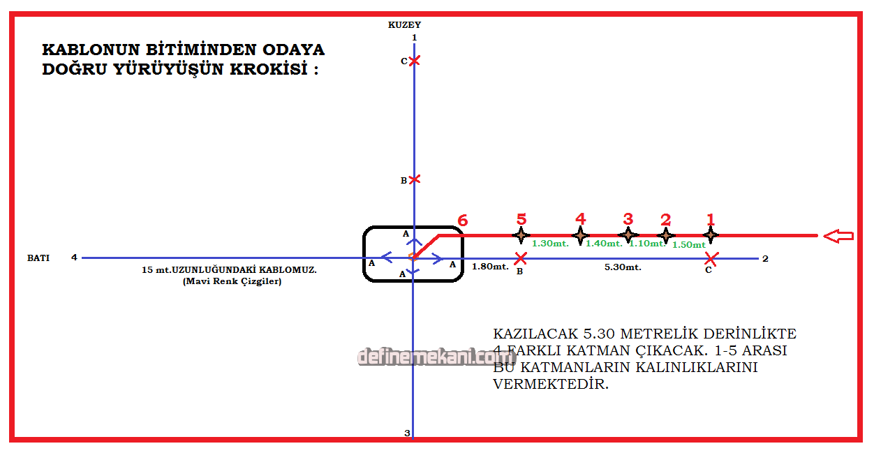 Yukarıdaki çizimdeki A-B noktasının odanın tavan ve tabanı arası olduğu net ve teyit edilmiş bir bilgidir.