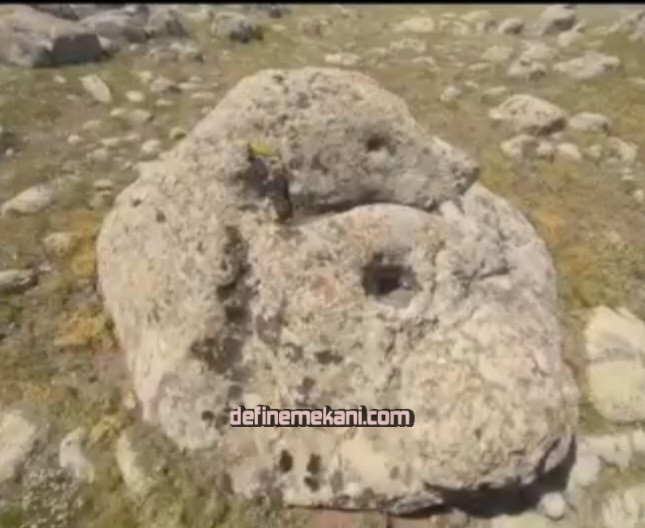 Pınarın üç merdiven, taşlarında köpek izleri varsa. karşısında 366 rakamlarına dikkat edelim. 366 rakamı buradadır. Burada birde köpek budu vardır, köpeğin iki ön bir arka ayağı var. arka ayağı ve bir budu hazineyi gösterir vaziyettedir.