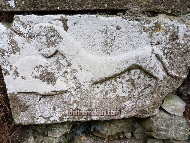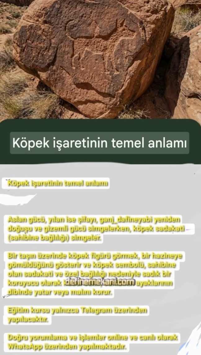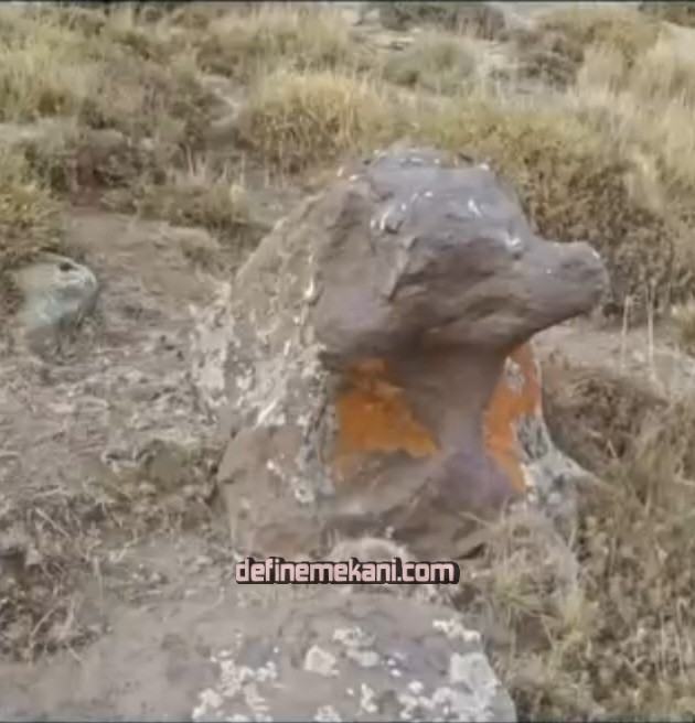 Köpek Diğer Anlamı: Oyma işlenişi daha sık rastlanan olup, Yunan kültüründen Bizans kültürüne doğru sarkan bir simgedir. Gözleriyle ya da bu belirlenemiyorsa kafasıyla baktığı istikamet mezarın olduğu yöndür. Çoğunlukla 3 ila 7 adım arasıdır. Eğer köpek tamamen dört ayağı açık sere serpe yatıyorsa burası mezardır. İçinde armağan olup olmadığı bilinemez. Zira bu motif sadece dini inanıştan kaynaklanan bir uygulamadır. Çevrede sevilip sayılan yaşlı insanlar için ölümlerinin ardından işlenir.