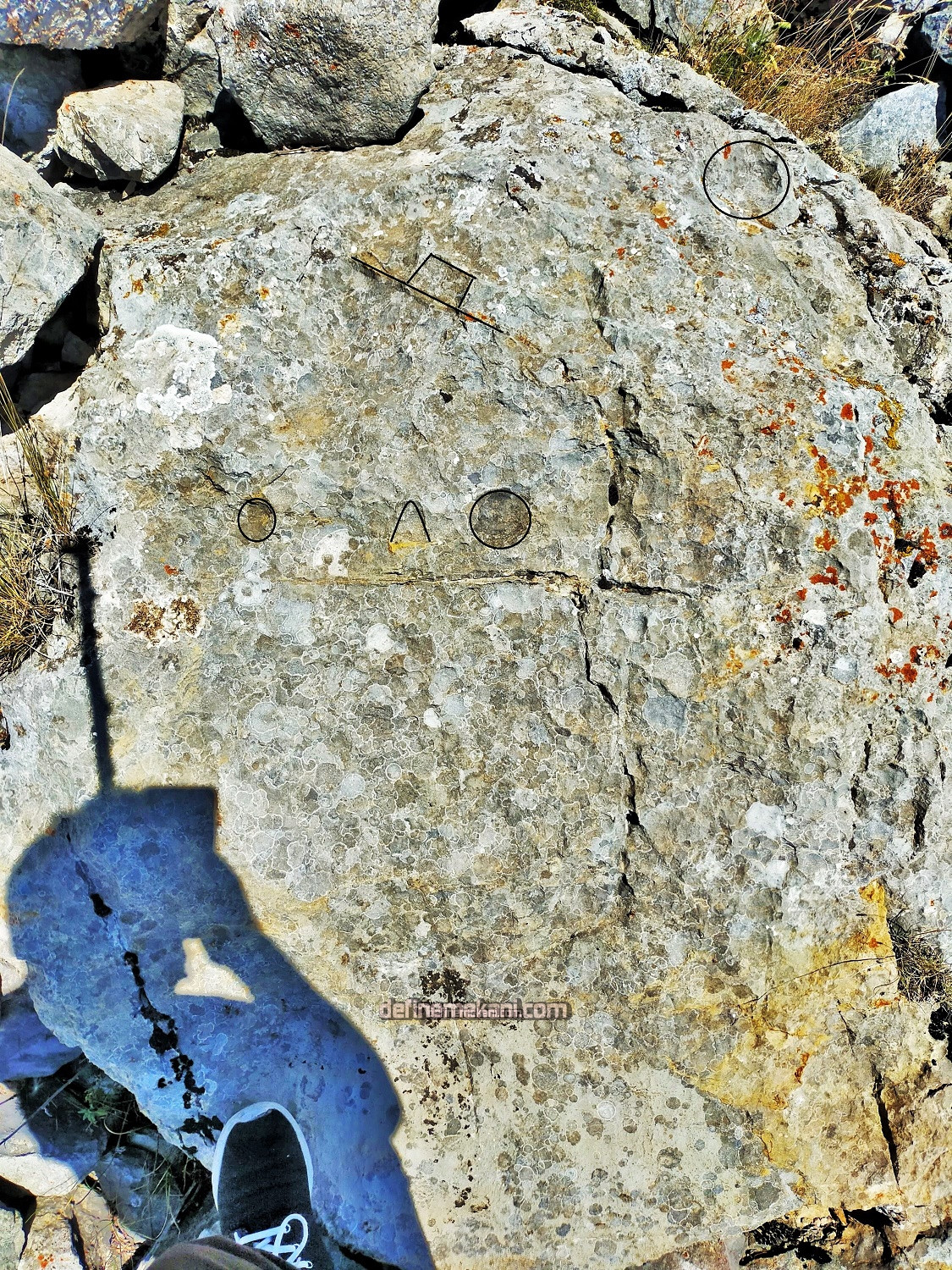 Söylediğim noktayı incele resimle oda olacak onu ve isaretini gormem lazım üzerinde oda işareti olan kaya olacak orada . Kale ise bir tane kayanin uzerini cekerek birsey gostermek olmaz. Etrafi degisik yonleri durdugu yerden ratgele resim bile cekse bir şeyler yakalariz bellimi olur