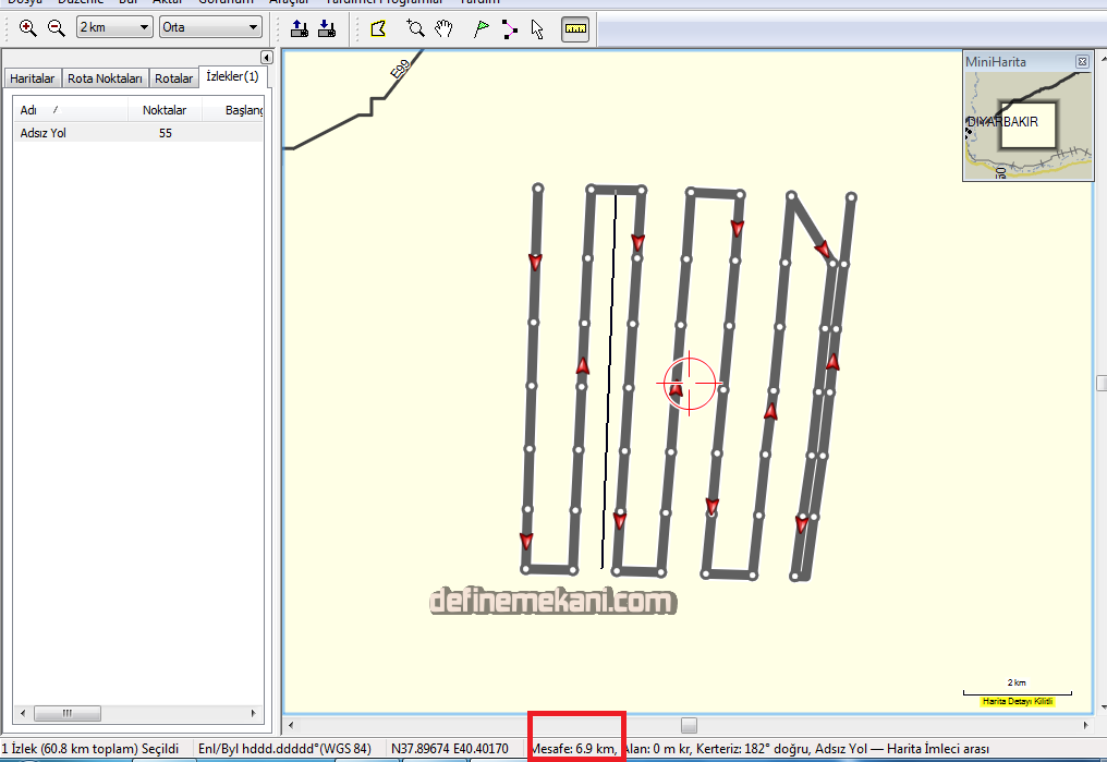 55 noktayla =yaklaşık 42 kilometre kareyi taramışsın