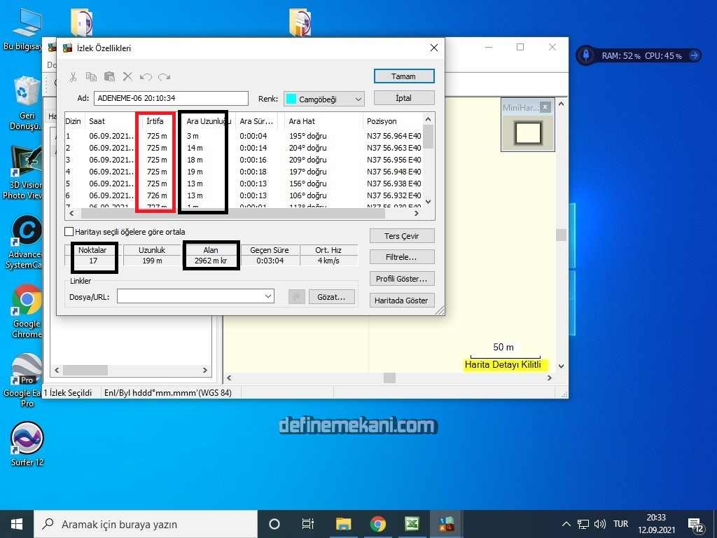 2962 m.kare alan gezdim,aldığım kordinat sayısı17 kordinat aralığına bak senin dediğinden bi farkı yok...