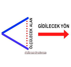 Açık uçlar arasındaki mesafe: V'nin açık uçları arasındaki mesafe ölçülerek, bu ölçü santimetre olarak alınıp ilgili yöne gidilebilir.