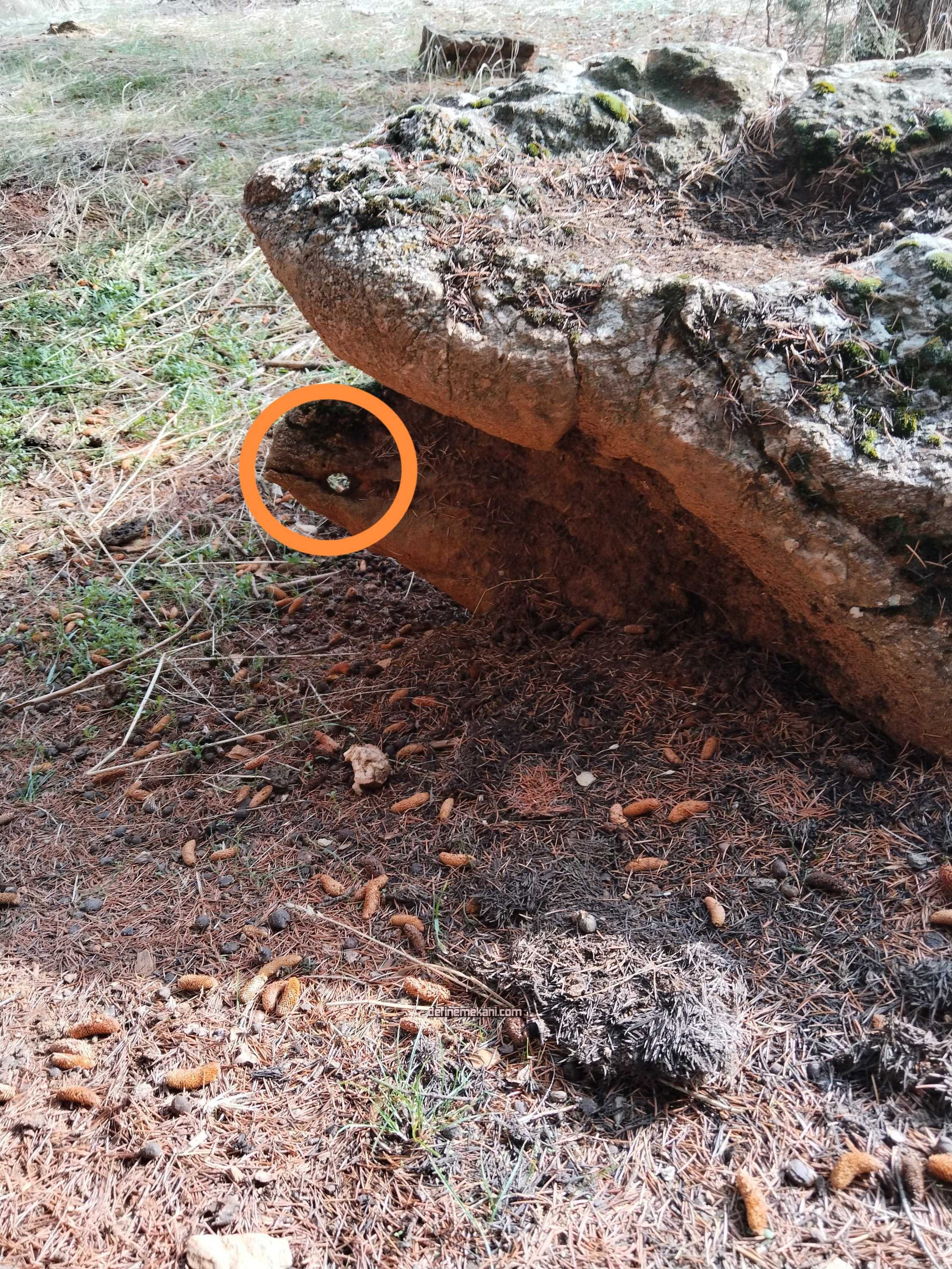 Şimdi gelelim benim acizane gördüğüme ve çözümüme. Bu toprağa bakarsak siz çok büyük bir yanlışın peşindesiniz. Buraya asıl kar yağdığında gelmeniz gerekir. Heryer bembeyaz iken yanyana üçgen yapan aralarındaki mesafesi çokda uzun olmayan üç nokta göreceksiniz. İkisi eşit boylarda biri ise çap olarak diğerlerinin 1,5-2 katı büyüklükte kar tutmayan çıplak alan göreceksiniz. Muhtemelen biri çamın eşiğindeki kayaya denk gelecek. Selametle 🤚